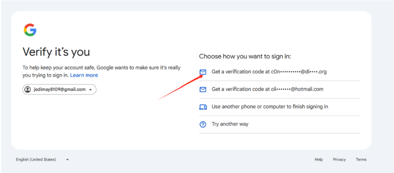 2.登录gmail,输入完密码以后,选择第一项通过辅助邮箱接收验证码